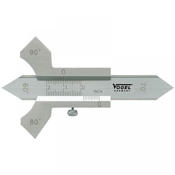 Messbereich: 0 - 20 mm Ablesung: 0.1 mm Winkel: 60° / 70° / 80° / 90° Abmessung: 98 mm x 59 mm x 5.2 mm Mit Nonius Zum Messen der Flachschweißnähte in Ecken usw. ; rostfreier Stahl. gehärtet und fein geschliffen ; Skala matt verchromt ; Feststellschraube