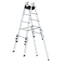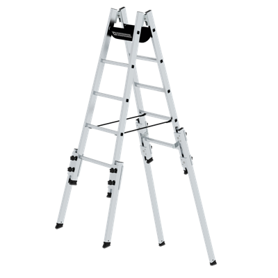 Treppengängige Stehleiter mit 4 nach unten ausschiebbaren Holmverlängerungen