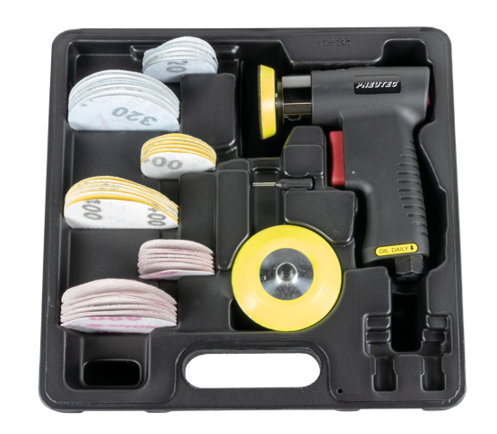 Mini Exzenterschleifer-Set im Kunstoffkoffer mit 50/75 mm Ø Klett-Teller
