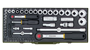 Steckschlüsseleinsätze von 4 - 32 mm. Zündkerzenspezialeinsätze 16 und 21 mm. Schraubereinsätze mit Vierkantantrieb für Schlitzschrauben, Kreuzschlitzschrauben, TX-Schrauben (mit stirnseitiger Bohrung) und Innensechskantschrauben. Innensechskantschlüssel (abgewinkelt) Gr. 1,25 - 1,5 - 2,0 - 2,5 und 3,0 mm. Sonstiger Inhalt siehe Abbildung.